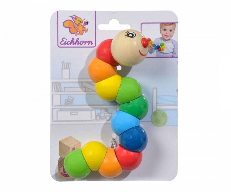 Zabawna, kolorowa gąsienica firmy Eichhorn może być ustawiana w różnych pozycjach za pomocą elastycznego, gumowego połączenia. Chwytaki rozwijają zdolności motoryczne, a kolorowe pierścienie ćwiczą percepcję dotykową maluchów.