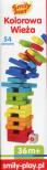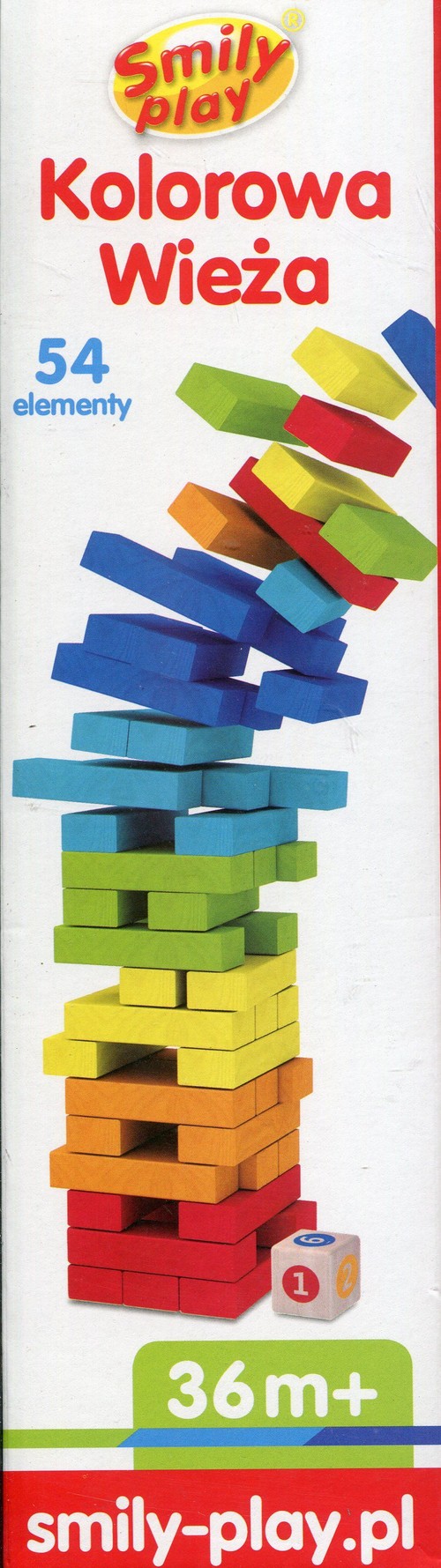 gra zręcznościowa gra na 3 sposoby Gra zręcznościowa zawiera 54 elementów w 6 kolorach. Uczy logicznego myślenia, kolorów, kolejności, liczenia. Wykonana jest z wysokiej jakości drewna. Nie ma ostrych kształtów. Do produkcji zabawki użyto nietoksycznych farb. Rzuć kostką. Wyjmij element takiego koloru, jaki wyrzuciłeś Połóż klocek na górze i buduj wieżę. Nie pozwól wieży rozpaść się. ZASADY GRY Gracze (1-8) siadają wokół ułożonej wieży. Można wybrać różne warianty gry: 1.Każdy z graczy po kolei wyciąga jeden dowolny element. 2. Każdy gracz wyciąga tyle elementów, ile oczek wyrzuci wcześniej na kostce. 3. Każdy gracz wyciąga jeden element takiego koloru, jaki wyrzucił kostką. Gra kończy się, kiedy któryś z graczy zburzy wieżę. Wygrywają wszyscy gracze, którzy tego nie zrobili.