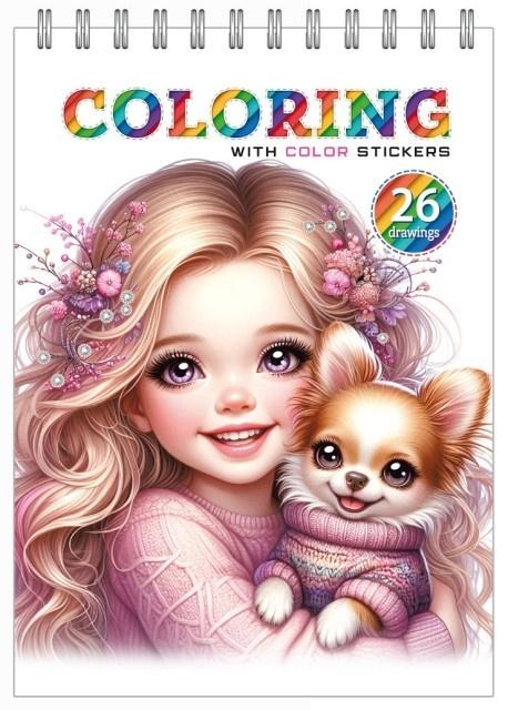 Kolorowanka 148x210 z naklejkami 12 stron 24220 Dziewczynka z pieskiem