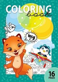Kolorowanka dla dzieci ze zwierzakami. W środku 16 obrazków do pokolorowania lub rozwiązania zagadek. Wyprodukowana na Ukrainie.