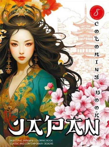 Kolorowanka A4 pionowa 8 obrazków Japan pomarańcz