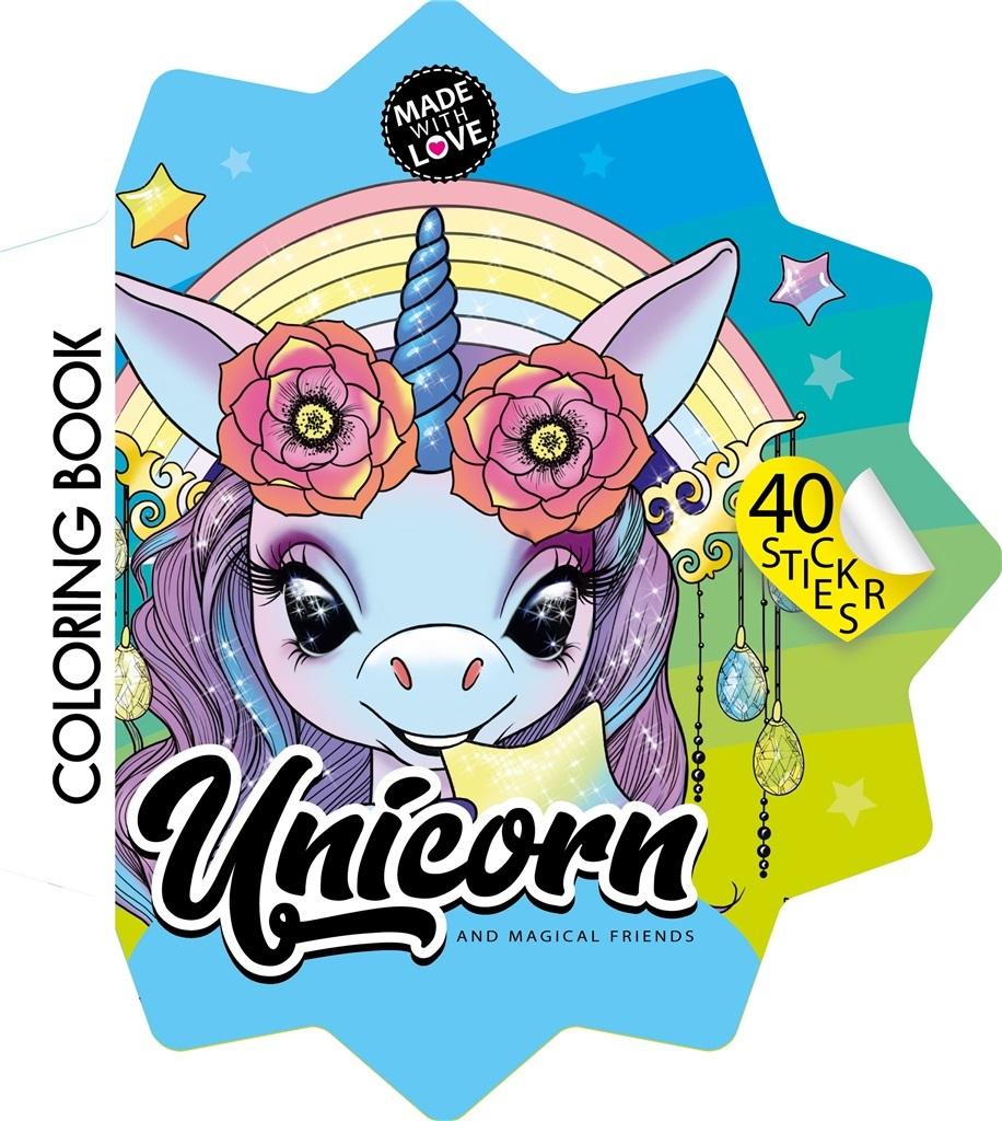 Kolorowanka dla dzieci w kształcie gwiazdki, z magicznymi zwierzątkami. W zestawie 40 naklejek. Wyprodukowano na Ukrainie.