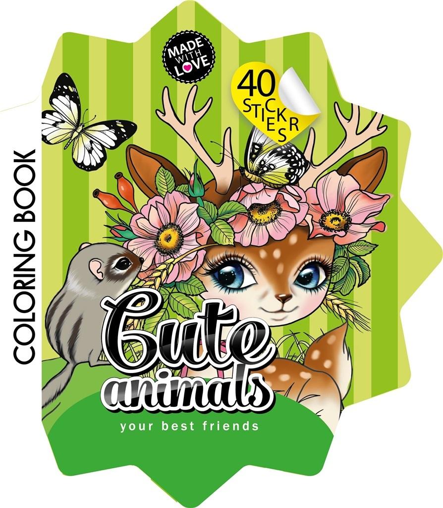 Kolorowanka dla dzieci w kształcie kwiatka, z magicznymi zwierzątkami. W zestawie 40 naklejek. Wyprodukowano na Ukrainie.