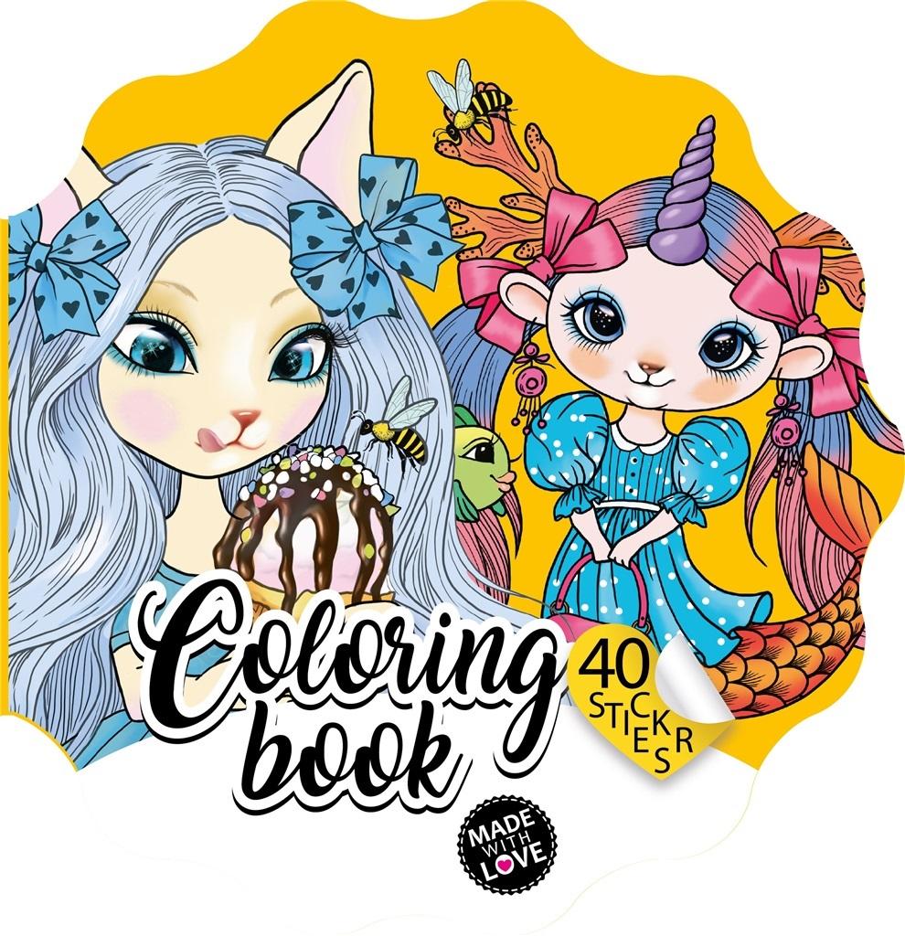 Kolorowanka dla dzieci w kształcie kwiatka, z magicznymi zwierzątkami. W zestawie 40 naklejek. Wyprodukowano na Ukrainie.
