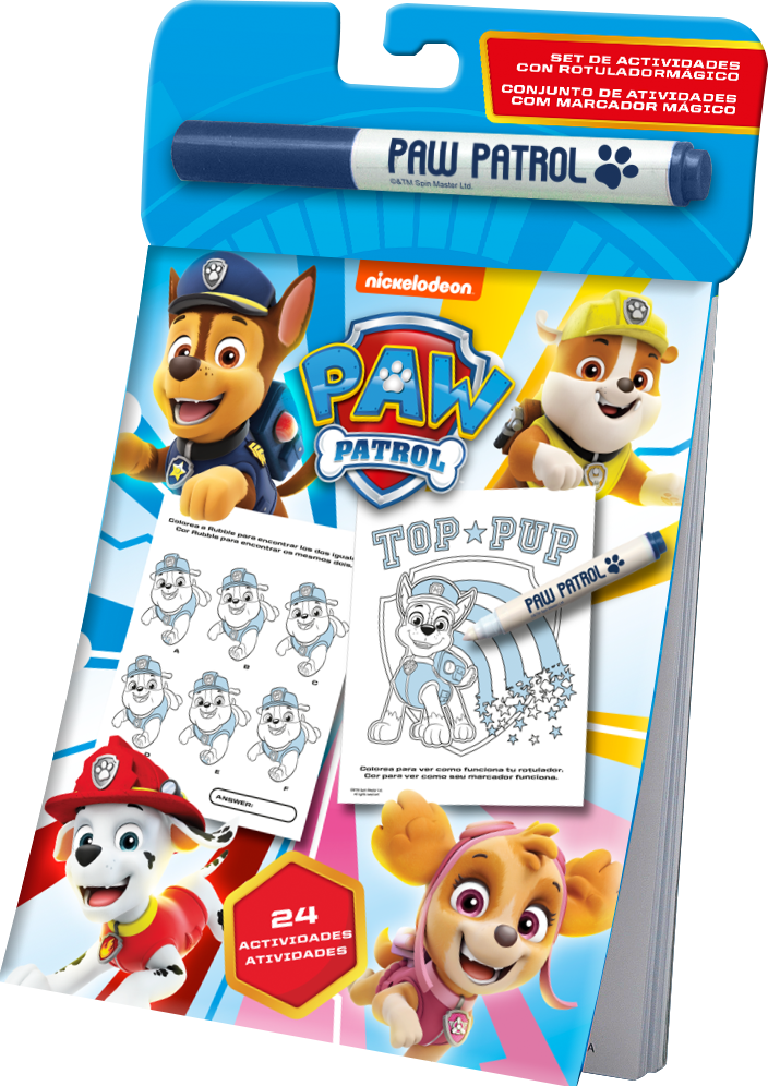 Koloruj, pisz, rozwiązuj zadania i baw się w niezwykłym świecie z Psim Patrolem! Zestaw zawiera 24 obrazki z zadaniami oraz magiczny flamaster, który zostawia ślad wyłącznie na magicznej kolorowance i odkrywa różne kolory. Nie brudzi rączek dziecka. Za pomocą magicznego flamastra odkrywaj obrazki i rozwiązuj zadania. Zestaw kreatywny pomaga ćwiczyć sprawność ręki dziecka, przygotowuje je do nauki pisania.