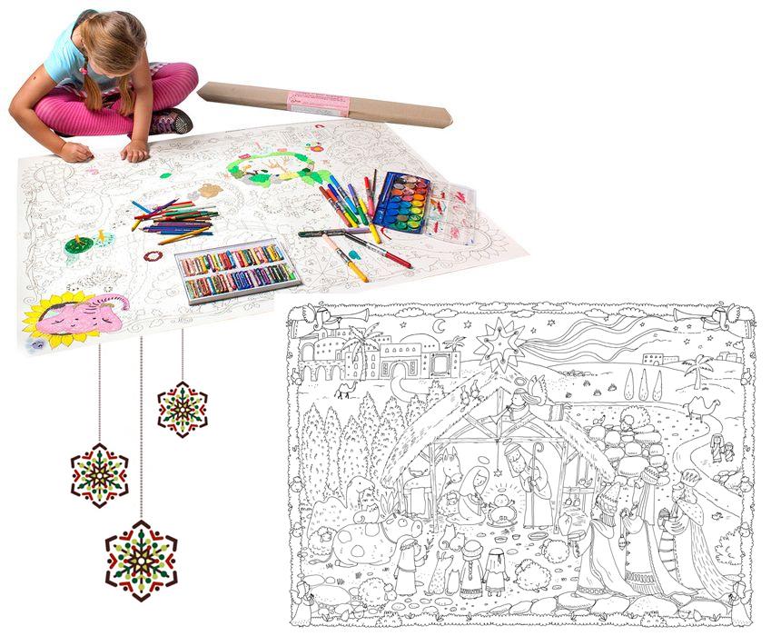 Kolorowanki Podłogowe w rozmiarze XXL o wymiarach 120cm x 80cm - ogromna powierzchnia do kolorowania kredkami, flamastrami i farbami. Wzmocniony spód arkusza zabezpiecza przed przesiąkaniem farb.