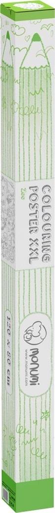Kolorowanka podłogowa XXL Zoo firmy Monumi jest pozycją przeznaczona dla dzieci w wieku od 3 lat wzwyż. Bristol o dużej powierzchni 120 x 80 cm pozwoli, aby w zabawie uczestniczyło kilkoro dzieci naraz. Kolorowanka została wykonana z wysokiej jakości grubego kartonu, przez co nadaje się do malowania nie tylko kredkami, ale także flamastrami i farbami, bez ryzyka uszkodzenia rysunku. Spodnia część arkusza została wzmocniona, ograniczając możliwość przesiąkania farb.