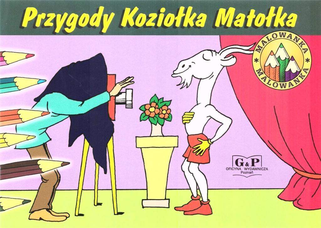 Kilkanaście motywów obrazkowych zabawnej historii Koziołka Matołka do pokolorowania. Opracowanie na podstawie książki Kornela Makuszyńskiego i Mariana Walentynowicza Przygody Koziołka Matołka.