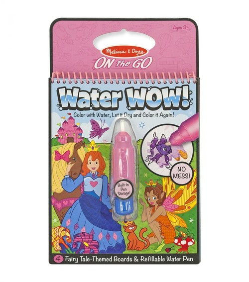 Malowanie bez bałaganu, brudzenia rąk czy ubrań! Ta książka do kolorowania zawiera cztery strony do wielokrotnego użytku i specjalny długopis wielokrotnego użytku. Należy napełnić długopis zwykłą wodą i zacząć malować po karcie. Za każdym pociągnięciem pędzelka pojawiają się koleje szczegóły! Po wyschnięciu rysunku kolory zanikają, karta nadaje się do ponownego malowania. Ta książeczka bajkowy świat, zawiera cztery sceny do pomalowania. Dla każdego z obrazków jest dodatkowe zadanie - maluch powinien odnaleźć poszukiwane, wskazane symbole. Długopis wodny jest łatwy do przechowywania, ma swoje miejsce w obudowie. Water WOW są idealnymi kolorowankami do podróżowania. Książeczka jest w języku angielskim.