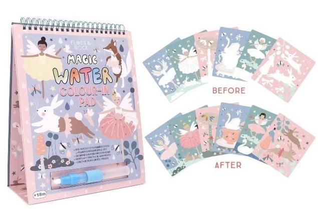 Kolorowanka wodna z pisakiem i podpórką to świetna zabawa dla najmłodszych. Wystarczy napełnić pisak wodą i zachęcić dziecko do kreatywnej zabawy, aby zobaczyć, jak kolory i kształty magicznie się pojawiają, a po wyschnięciu znikają. Dziecko będzie się świetnie bawić, odkrywając urocze baletnice, zaczarowane łabędzie, przyjazne leśne zwierzęta i nie tylko. Sześć zabawnych kart jest połączonych w spiralnie oprawionej okładce, dzięki czemu można je odwracać po ukończeniu. Podpórka wygodnie podtrzymuje karty wielokrotnego użytku. Po zakończeniu zabawy wystarczy złożyć podpórkę, a dzięki elastycznej gumce pisak zawsze będzie na swoim miejscu.