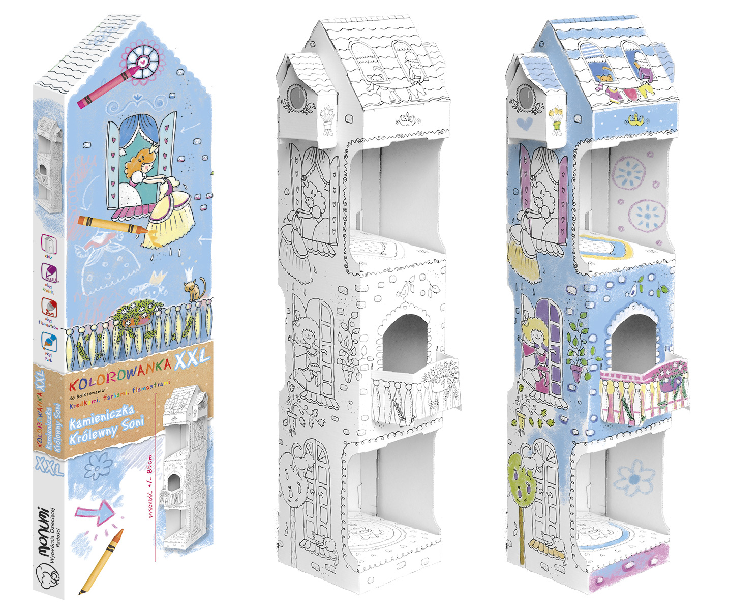 Rozkładany regalik do kolorowania; wykonany z kartonu; wzór: Kamieniczka Królewny Sonii; przeznaczony dla dzieci w wieku 5-8 lat; wymiary produktu po złożeniu 83x18x19 cm; wymiary opakowania 85x20x7 cm. Opis: rozkładany regalik do kolorowania, wykonany z kartonu, wzór: Kamieniczka Królewny Sonii przeznaczony dla dzieci w wieku 5-8 lat, wymiary produktu po złożeniu 83x18x19 cm, wymiary opakowania 85x20x7 cm.