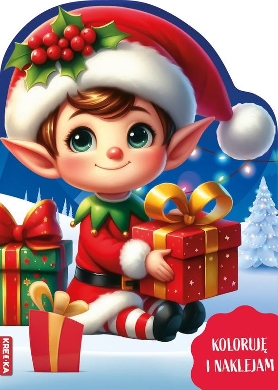 Świąteczny elf potrzebuje twojej pomocy! Pomóż mu przygotować prezenty i ozdoby. Każda strona to nowa niespodzianka do pokolorowania!