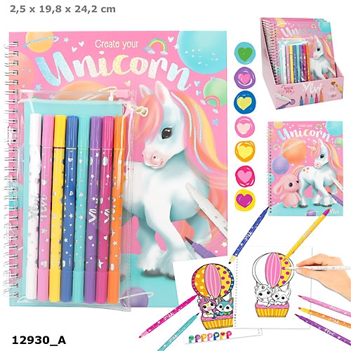 Kolorowanka z magicznymi flamastrami Jednorożec Ylvi, 60 stron, 7 magicznych dwustronnych flamastrów (dwa rodzaje końcówek)