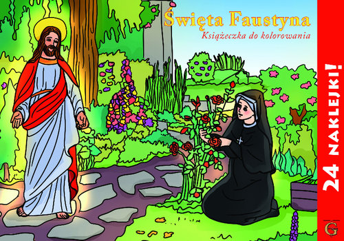 Święta Faustyna Kowalska. Książeczka do kolorowania przedstawia językiem przystępnym dla dzieci sceny z życia świętej zakonnicy i mistyczki. Ilustracjom towarzyszą krótkie teksty na jej temat. Rodzice lub opiekunowie, czytając dzieciom tę biografię, wprowadzą je w tajemnicę świętości znanej na całym świecie polskiej siostry zakonnej, której umiłowanie Boga jest nieocenionym wzorem dla najmłodszych. W książce znajdują się dwie modlitwy, którymi dziecko może modlić się każdego dnia (samo lub razem z opiekunami). Do kolorowanki zostały dołączone naklejki, które ułatwią najmłodszym odpowiedni dobór barw.