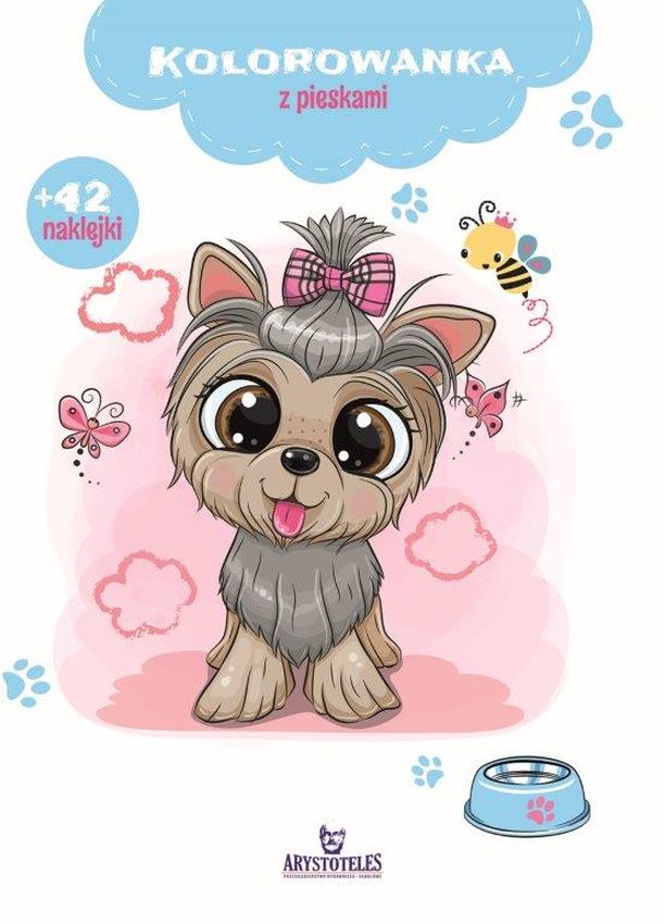 Wesołe kolorowanki pozwalają poznać wspaniały świat piesków. Obrazki do pokolorowania, komplet naklejek do nich, a także dodatkowe 18 sztuk naklejek do przyklejenia, gdzie chcesz, sprawią, że każdy miłośnik psiaków zamarzy o tej kolorowance.