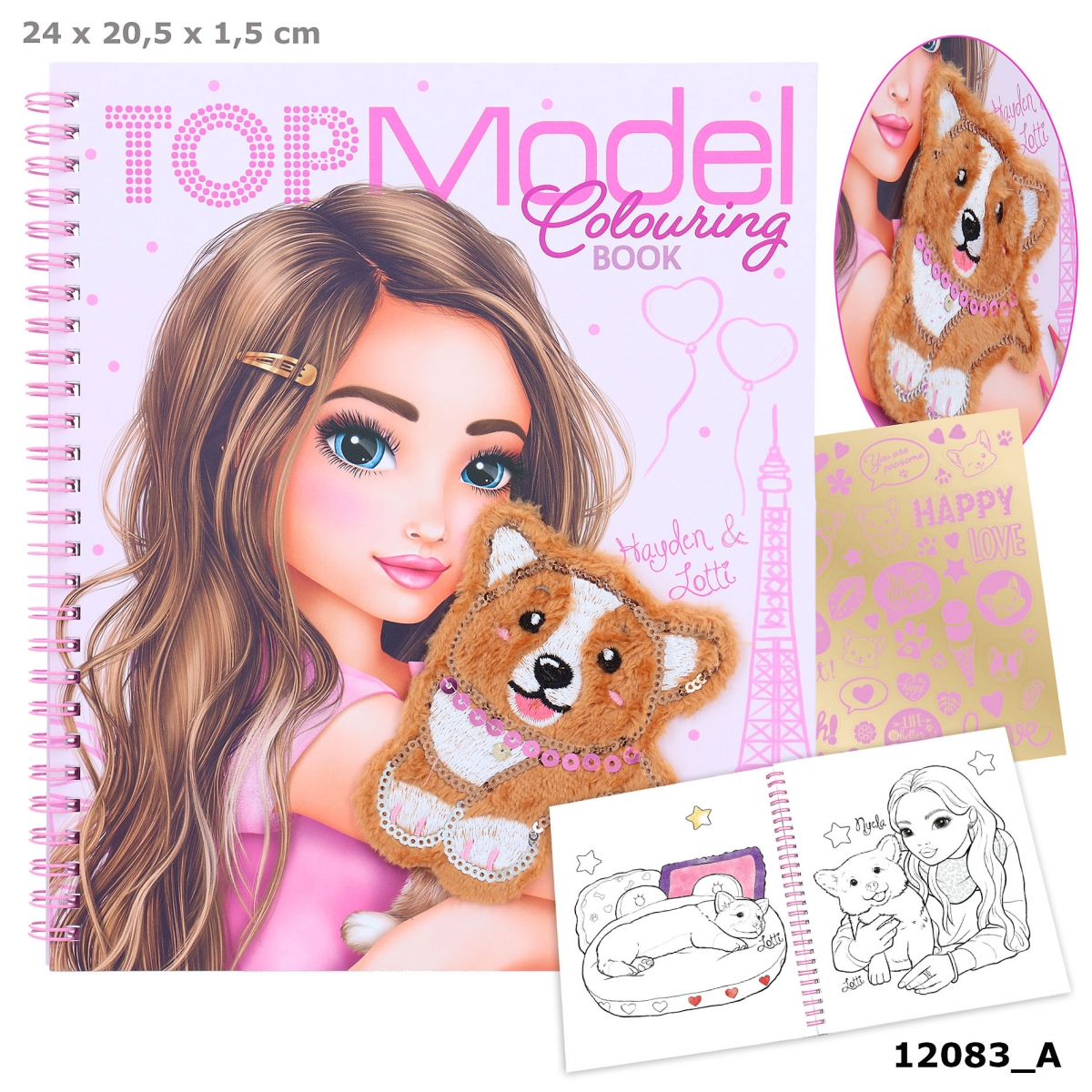 Kolorowanka z pluszowym pieskiem TOP Model Corgi, 20 stron do kolorowania i jedna strona z naklejkami. Piękna pluszowa aplikacja z cekinami na okładce.