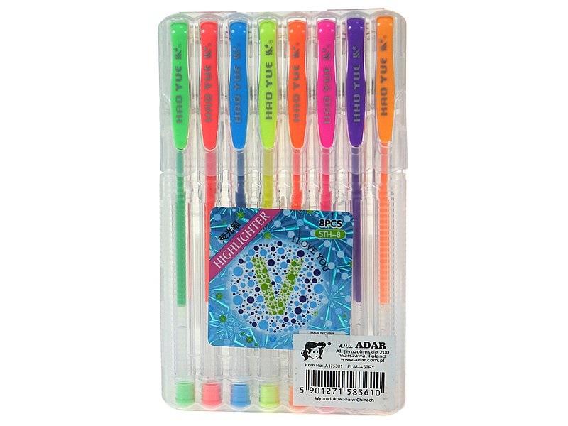 zestaw 8 żelowych długopisów, z brokatem; PVC