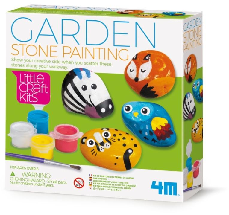 Malowane kamienie to wspaniały prezent dla rodziny i przyjaciół. Malowanie to czynność, która pomaga rozwijać wyobraźnię i umiejętności motoryczne, a do tego wspaniale wycisza. Stwórz swoje własne kolorowe kamienie, których możesz użyć do ozdoby ogrodu, roślin doniczkowych lub pokoju. A kto powiedział, że takimi ""żetonami"" nie można się po prostu bawić? Zestaw zawiera wspaniałe pomysły na wykonanie i wykorzystanie kolorowych pomalowanych kamieni. Zestaw zawiera: 4 kamienie, 4 kolory farby, 1 pędzel i szczegółowe instrukcje. Wiek: 5+