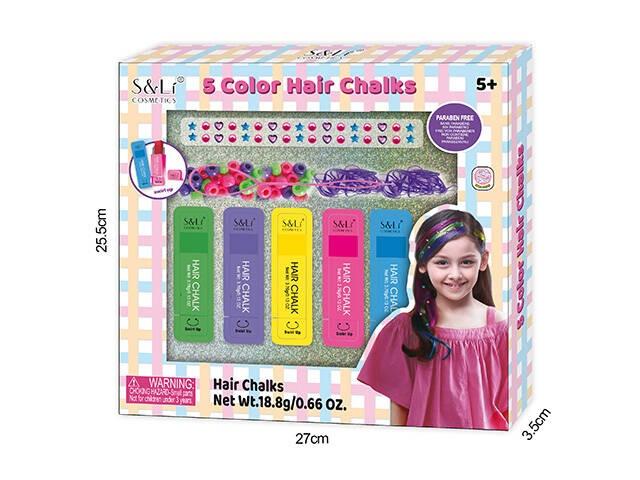 • 5 różnokolorowych kredek do zabarwiania włosów