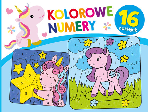 W książce znalazły się obrazki do pokolorowania według wzorów. Każda część ilustracji została opatrzona cyferką odpowiadającą konkretnej barwie, dzięki czemu mały artysta będzie mógł stworzyć piękne prace plastyczne. Zabawę ułatwią kolorowe naklejki miniaturki poszczególnych obrazków.