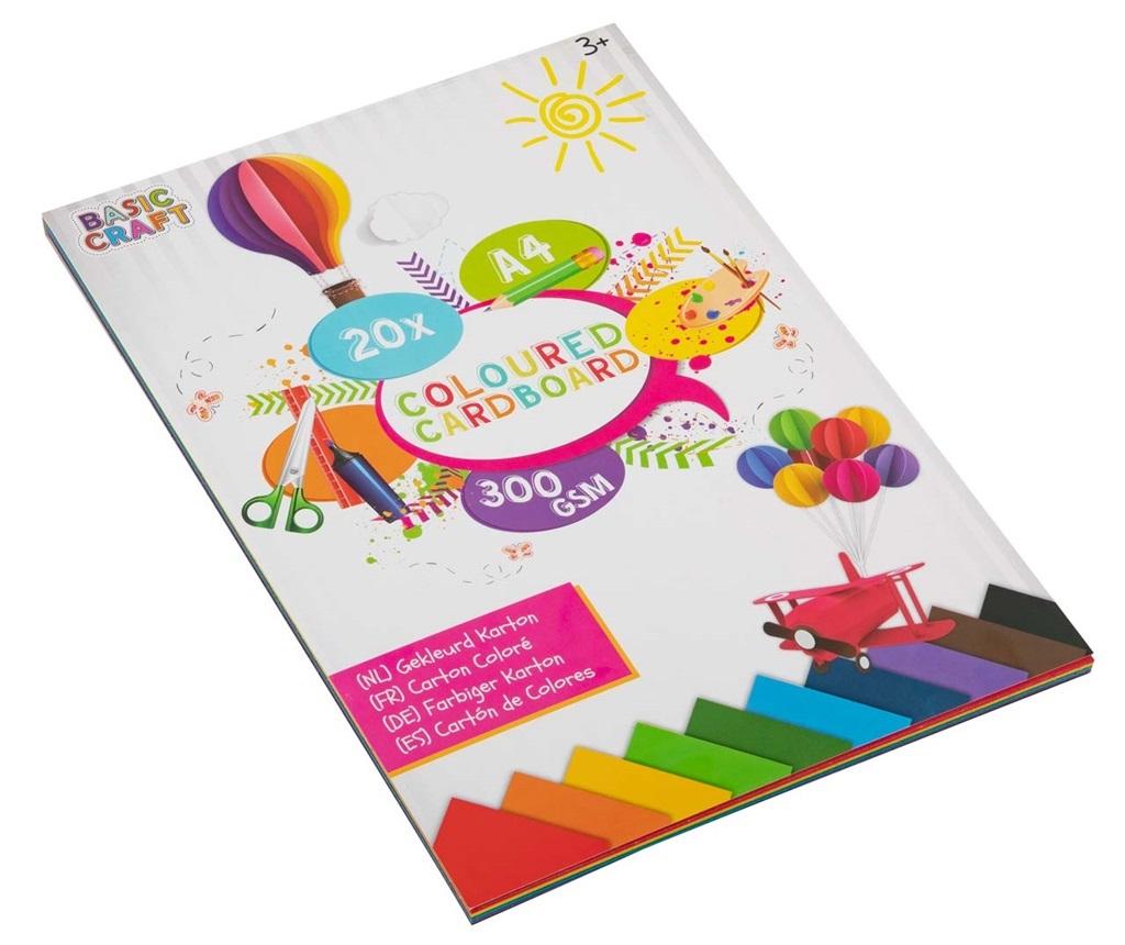 20 kartonowych arkuszy formatu A4 w kilku kolorach. Kolorowe kartki są idealne do kreatywnej ekspresji, czy to za pomocą farb, czy też nożyczek i kleju. Arkusze mają gramaturę papieru 300 g/m2, dzięki czemu są grubsze i bardziej wytrzymałe.