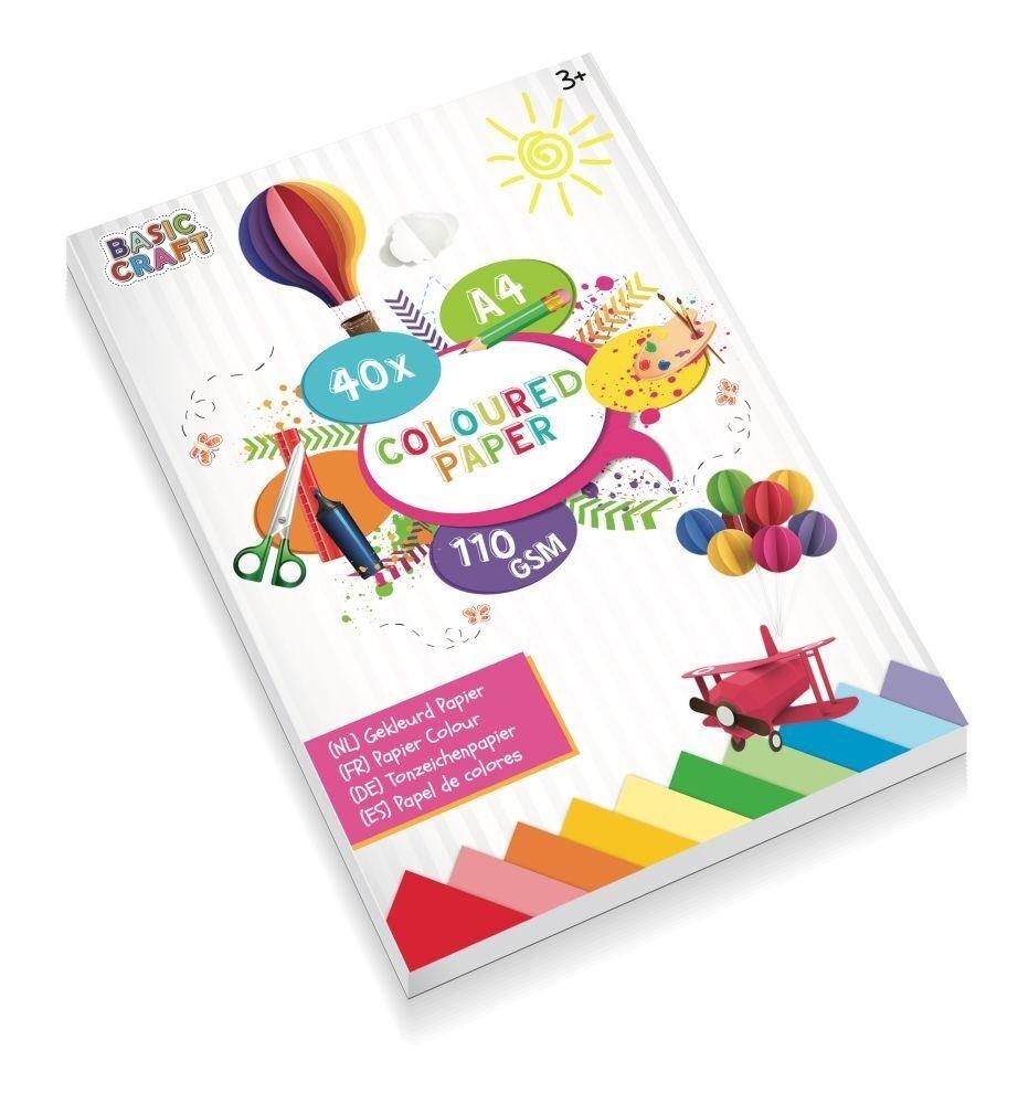 40 kartonowych arkuszy formatu A4 w kilku kolorach. Kolorowe kartki są idealne do kreatywnej ekspresji, czy to za pomocą farb, czy też nożyczek i kleju. Arkusze mają gramaturę papieru 110 g/m2, dzięki czemu są grubsze i bardziej wytrzymałe.
