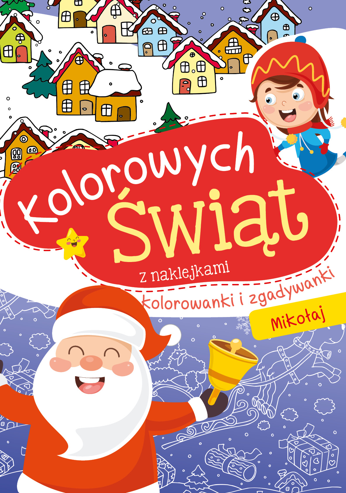 Książeczka do kolorowania, naklejania, zgadywania i odszukiwania, czyli prezent od Świętego Mikołaja! Urocze rysunki, roześmiani bohaterowie, zimowe przygody i zabawy stworzone z myślą o najmłodszych. Mikołaj życzy Kolorowych Świąt!