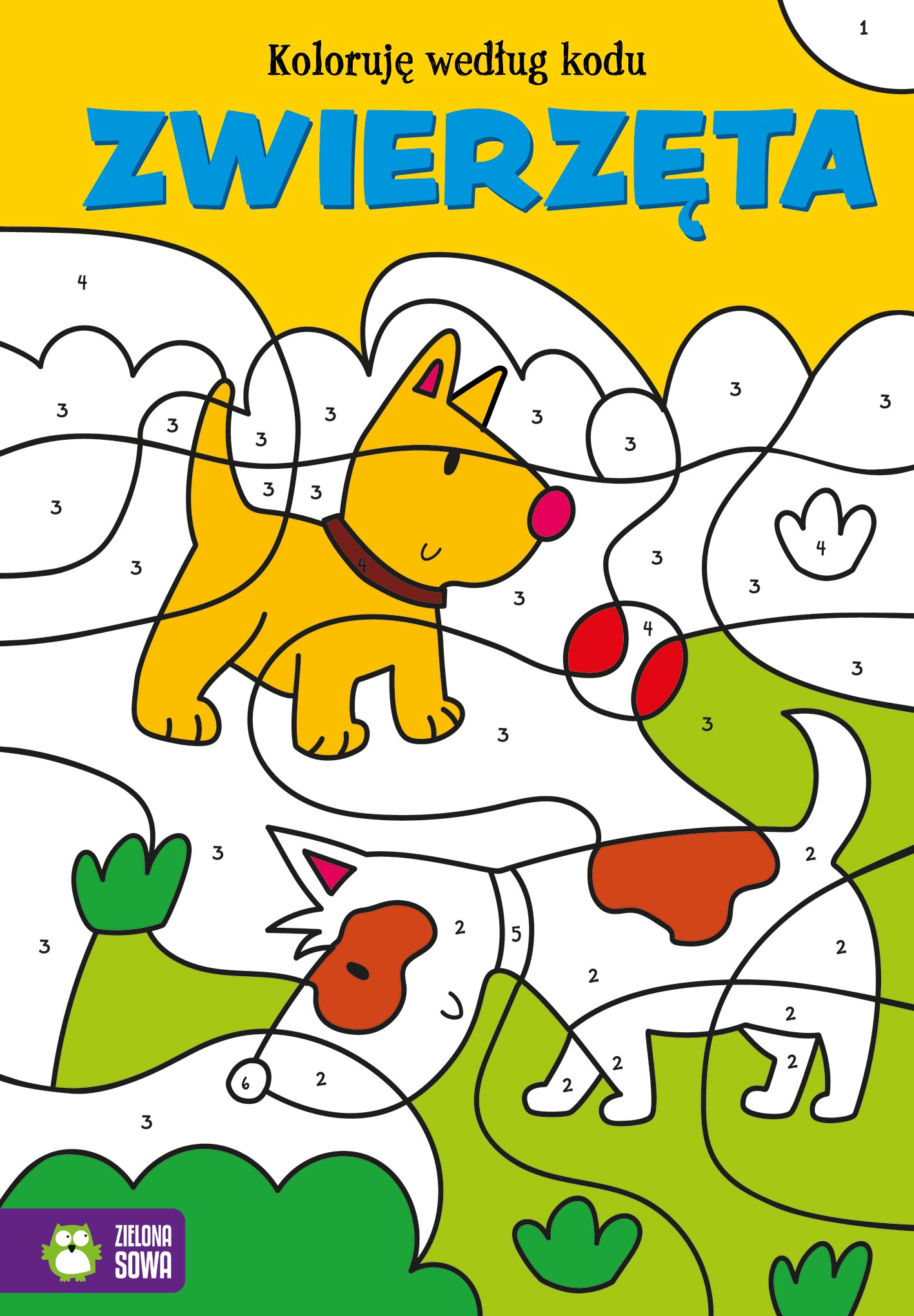 Książki z serii "Koloruję według kodu" to wyjątkowe kolorowanki, które dodatkowo ćwiczą spostrzegawczość. Dzieci kolorują obrazek zgodnie z kodem zapisanym kropkami, cyframi lub symbolami.