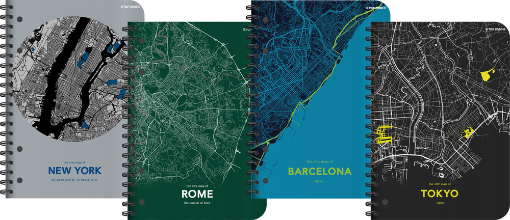 • Minimalistyczne grafiki z mapami wybranych miast na okładkach oraz uszlachetnienia przyciągają uwagę użytkownika