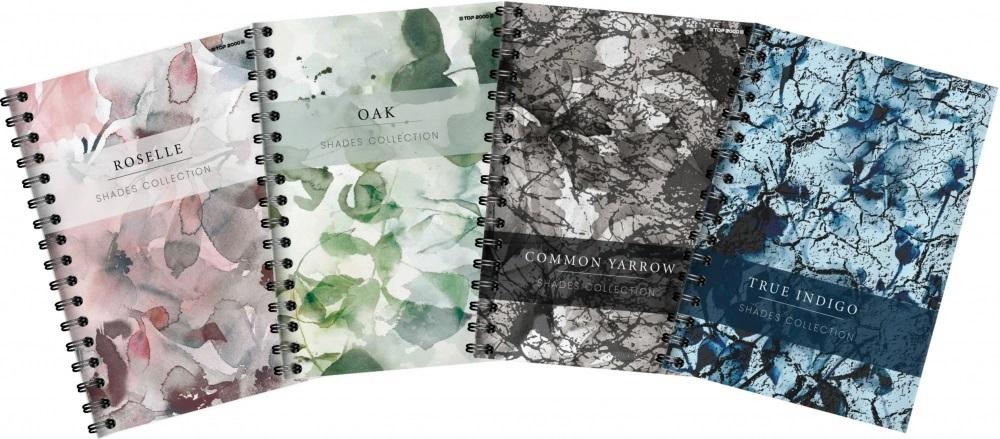 Kolekcja Shades to niezwykle ciekawe grafiki ukazujące efekty użycia danych roślin do barwienia tkanin. Nazwy naturalnych barwników są zawarte na froncie okładki, co dodatkowo wprowadza do kolekcji element ciekawostki. Szeroki wachlarz formatów i oprawy pozwoli na dobór odpowiedniego dla siebie asortymentu.