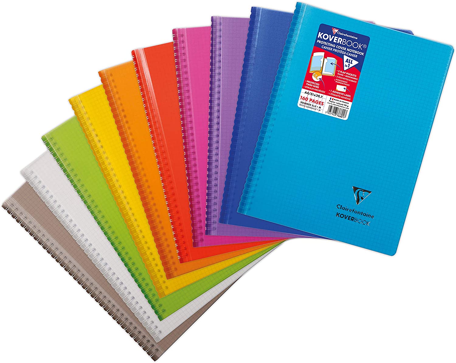 Kołonotatnik Koverbook Clairefontaine w kratkę w formacie A4 cm z okładką w 10 intensywnych kolorach (czarny, biały, zielony, żółty, pomarańczowy, czerwony, różowy, fioletowy, niebieski i jasnoniebieski). To doskonałe połączenie wyjątkowej jakości i funkcjonalności. Zawiera 80 kartek o idealnie satynowym wykończeniu, które nie tylko zapewniają doskonałą gładkość pisania, ale także eliminują prześwitywanie i przebijanie atramentu. Charakterystyczny papier Clairefontaine o gramaturze 90g/m2 gwarantuje doskonałe efekty pisania zarówno ołówkiem, długopisem jak i piórem wiecznym i atramentem. Kolor nadruku został precyzyjnie dobrany, aby zapewnić optymalny kontrast pomiędzy liniaturą a papierem, minimalizując obciążenie wzroku.