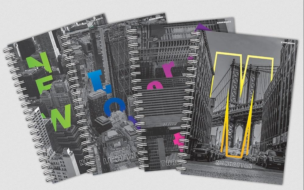 Kołozeszyt Top 2000, A5/100K kratka, City 70g. Opakowanie zbiorcze zawiera 5 sztuk. Mix wzorów.