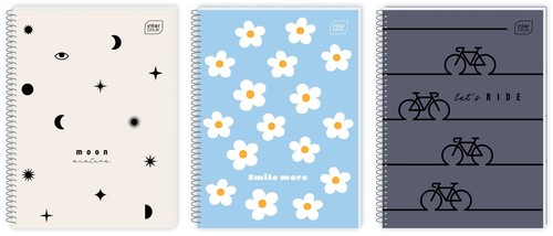 Kołozeszyt A5 w kratkę, 80 kartek, mix wzorów. 5 sztuk w opakowaniu zbiorczym. Producent Interdruk.