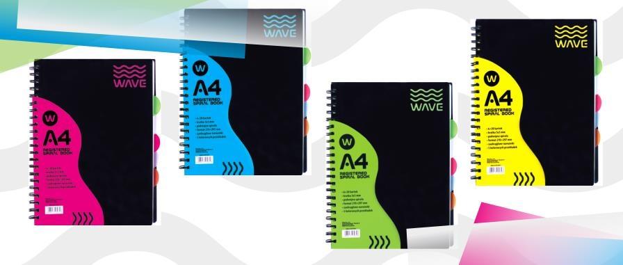 - czarna okładka polipropylenowa - format A6 - 5 kolorowych przekładek - bezpieczne narożniki - podwójna spirala - kratka - 120 kartek