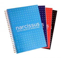 Kołozeszyt A5 marki Narcissus. Strony zadrukowane w nowoczesne kropki.