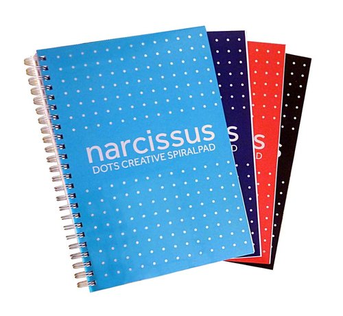 Kołozeszyt A5 marki Narcissus. Strony zadrukowane w nowoczesne kropki. 80 kartek, papier o gramaturze 80. Metalizowany nadruk na okładce. Dostępny w czterech wariantach kolorystycznych.