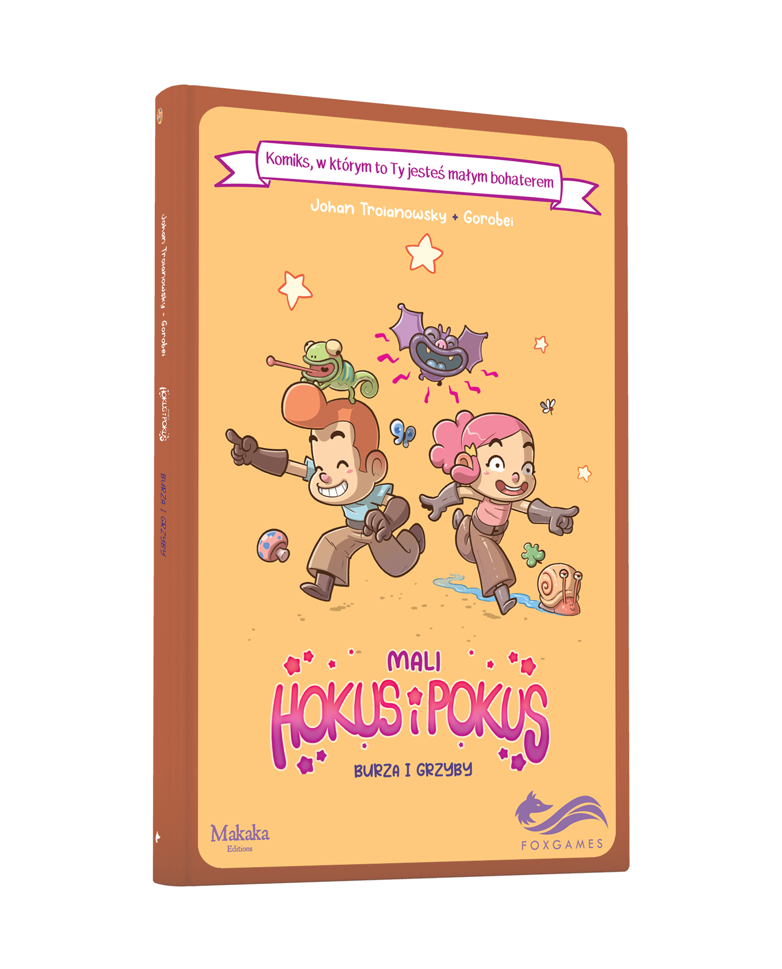 Poznaj Hokusa i Pokus – dwójkę przyjaciół, którzy razem uczą się w Szkole Bajkonologii. Przed nimi dwie niesamowite, a zarazem niebezpieczne misje. Wyrusz z Hokusem do Krainy Chmur, by odnaleźć i ocalić zaginioną Dorotkę. A może wolisz polecieć za zaczarowanym dywanie prosto do Krainy Tysiąca i Jednej Nocy, by razem z Pokus rozwiązać zagadkę dziwacznych grzybów? Na szczęście, mały czytelniku, nie musisz z niczego rezygnować, bo obie te przygody czekają na Ciebie w kolorowych kadrach naszego komiksu! Wybierz bajkona i w drogę!