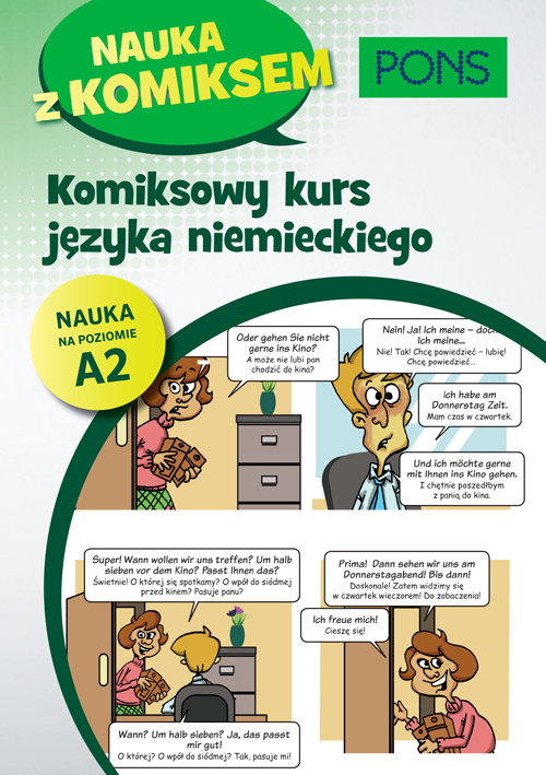 Komiksowy kurs niemieckiego nauczy cię języka na poziomie A2 dzięki zabawnej historyjce obrazkowej, której bohaterami są Sofia, Felix i ich znajomi. Początkiem każdej lekcji jest wstęp, z którego dowiesz się, jakie tematy będą w niej omawiane. Na następnych stronach przeczytasz historię Felixa i Sofii opowiedzianą w formie komiksu. W każdym rozdziale poznasz bliżej ich wspólne życie. Następnie poznasz ważne słownictwo przedstawione za pomocą obrazków. W części komunikacja nauczysz się, co i w jaki sposób możesz powiedzieć w różnych sytuacjach. W dalszej części poznasz i przećwiczysz zagadnienia gramatyczne. Na końcu znajdziesz odpowiedzi do wszystkich ćwiczeń, słowniczek zawierający wszystkie słówka z książki, listę czasowników nieregularnych oraz objaśnienia najważniejszych zagadnień gramatycznych.