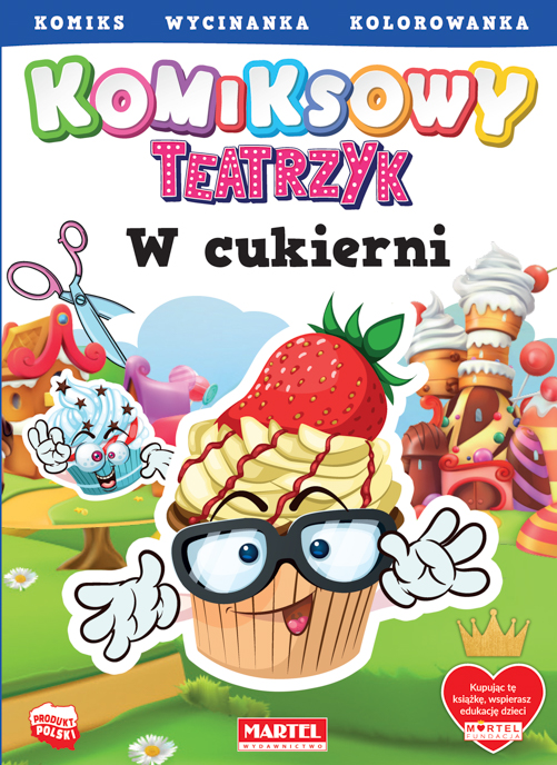 "Komiksowy teatrzyk. W cukierni" jest komiksem, wycinanką i teatrzykiem. Zapewnia dziecku wielokierunkową zabawę, wykorzystującą jego kreatywność oraz zdolności poznawcze i manualne. Opowiada o współpracy słodziaków, które wraz z mistrzem Leopoldem podejmują wyzwanie i postanawiają wykonać konkursowy tort. Nie jestto łatwe, ponieważ każdy z bohaterów ma na to inny pomysł.