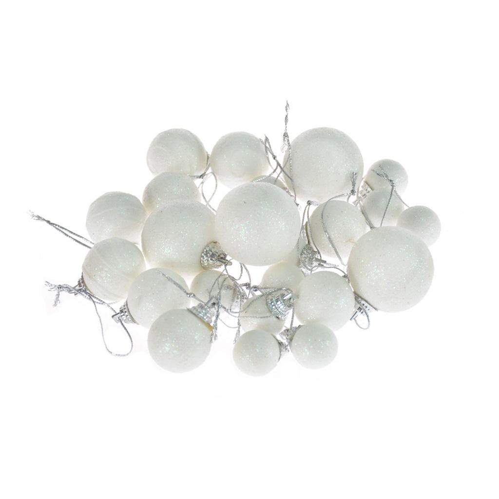 Komplet ozdób choinkowych o średnicy 2-4 cm. w kolorze białym.
