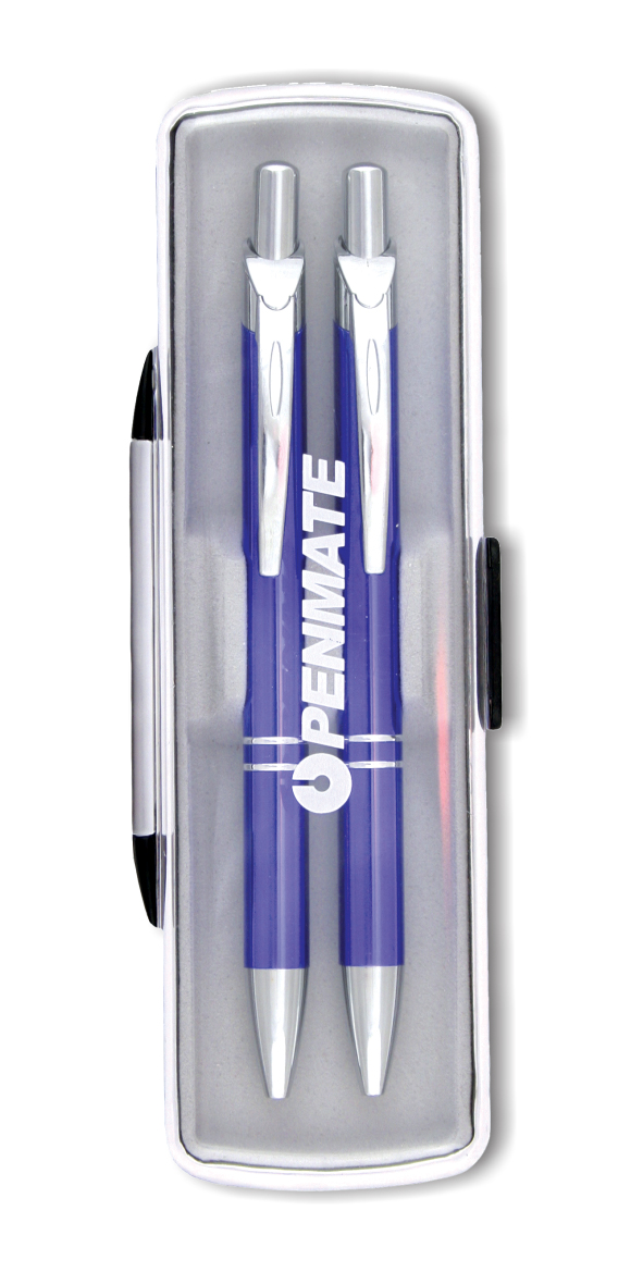Komplet PenMate długopis + ołówek Lux. Komplet składający się z długopisu i ołówka automatycznego. Długopis z wymiennym wkładem. Ołówek automatyczny 0,7 mm z chowaną końcówką. Korpus ołówka i długopisu wykonany z aluminium, pozostałe części metalowe chromowane.