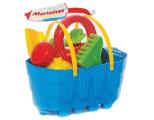 W zestawie 7 elementów: wiaderko, konewka, grabki, łopatka, 3 foremki.