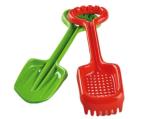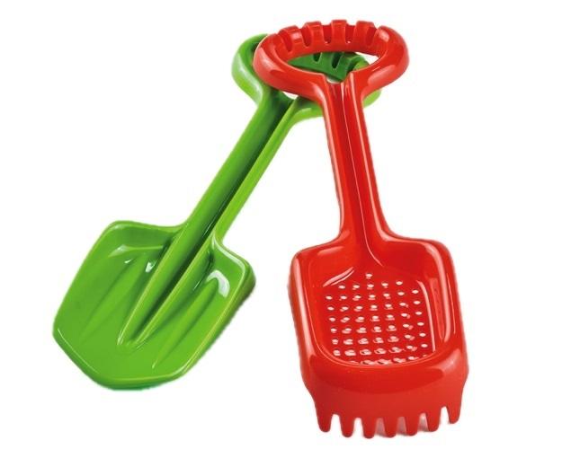 Rozmiar szpadla: 33 cm x 14 cm x 13 cm. Rozmiar grabek: 33 cm x 9 cm x 21 cm.