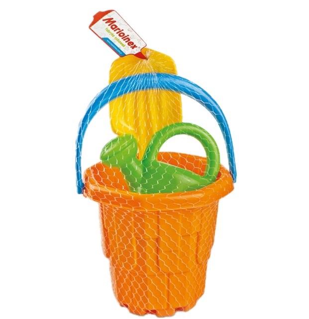 W zestawie 3 elementy: wiaderko, konewka, łopatka