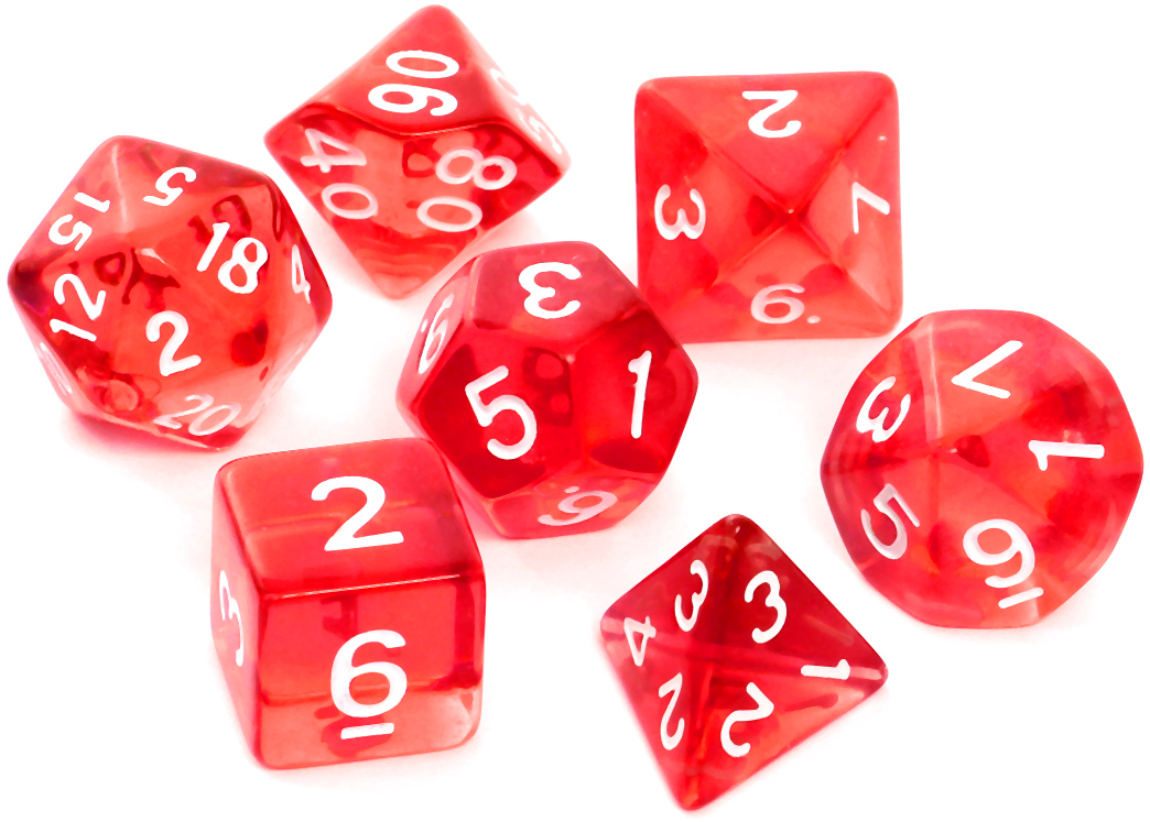 Komplet kości REBEL RPG - Kryształowe - Czerwone