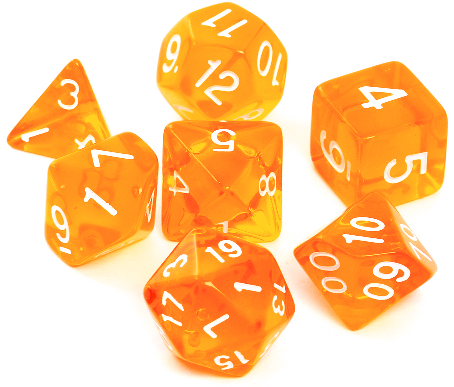 Komplet kości REBEL RPG - Kryształowe - Pomarańczowe