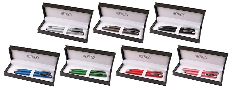 Klasyczny model zestawu piśmiennego ASTON w tradycyjnej kolorystyce. Kolekcja obejmuje pióro wieczne ze stalówką irydową oraz długopis z wkładem wielko pojemnościowym, niebieski 1 mm. Komplet zapakowany w eleganckie etui skóropodobne 38.