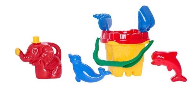 W zestawie znajduje się wiaderko "zamek" z sitkiem, 2 foremki delfinek i foczka, łopatka, grabki oraz konewka "Słoń". Nasza pociacha na pewno nie będzie się nudzić na plaży. Zabawka ta przeznaczona jest dla każdego dziecka i na każdym etapie jego rozwoju. Tworzenie zamków z piasku rozwija wyobraźnię dziecka i wyzwala twórcze działanie.