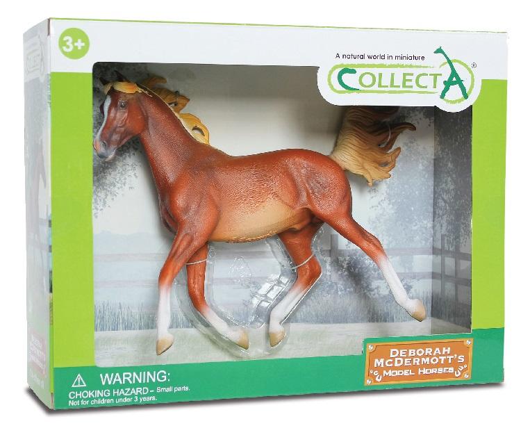 KOŃ ARABSKI KASZTAN to figurka kolekcjonerska firmy Collecta. Produkty tej firmy cechuje wysoka jakość wykonania oraz wiernie oddany kształt oraz kolor zwierzęcia. Cała kolekcja obejmuje przeszło 553 gatunków, podzielonych na 9 kategorii i 4 grupy cenowe: S - small; M - medium; L - large; XL - X large; oraz figurki deluxe i akcesoria.
