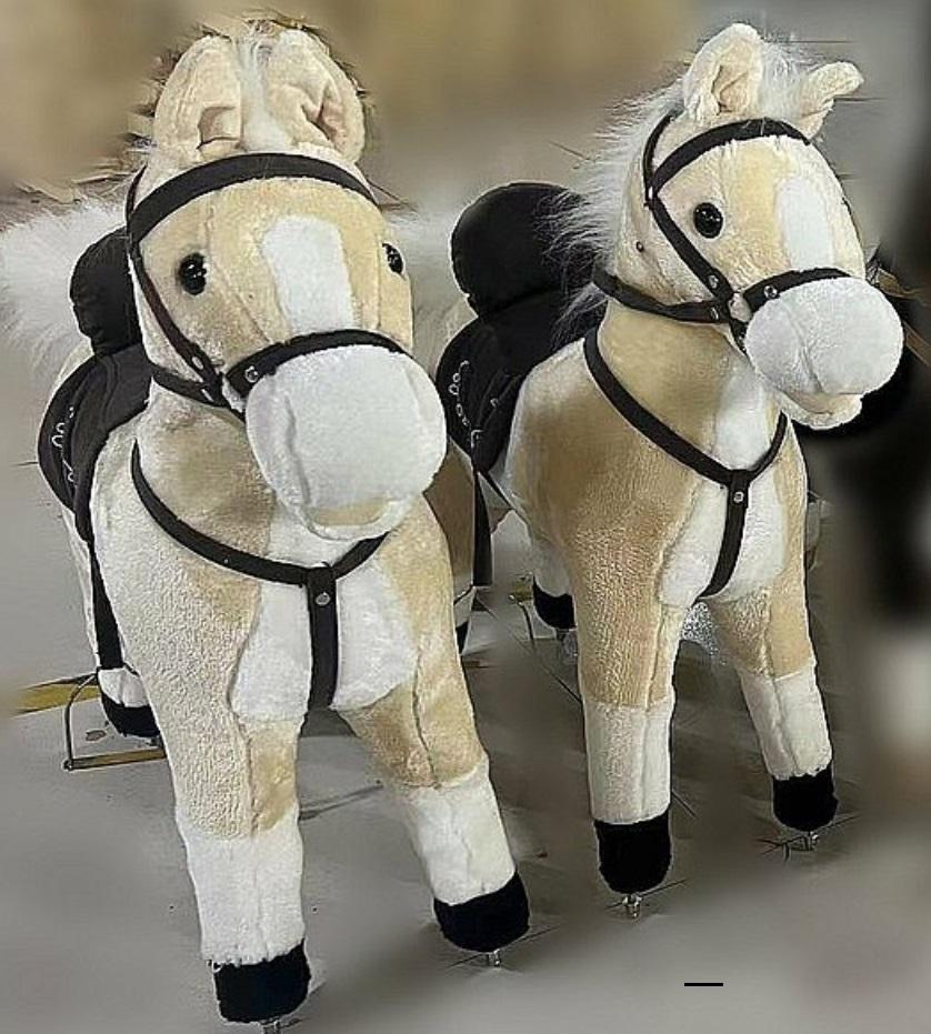 koń na biegunach z dźwiękiem, długość 60cm, wysokość 46cm w kłębie, całość 66cm